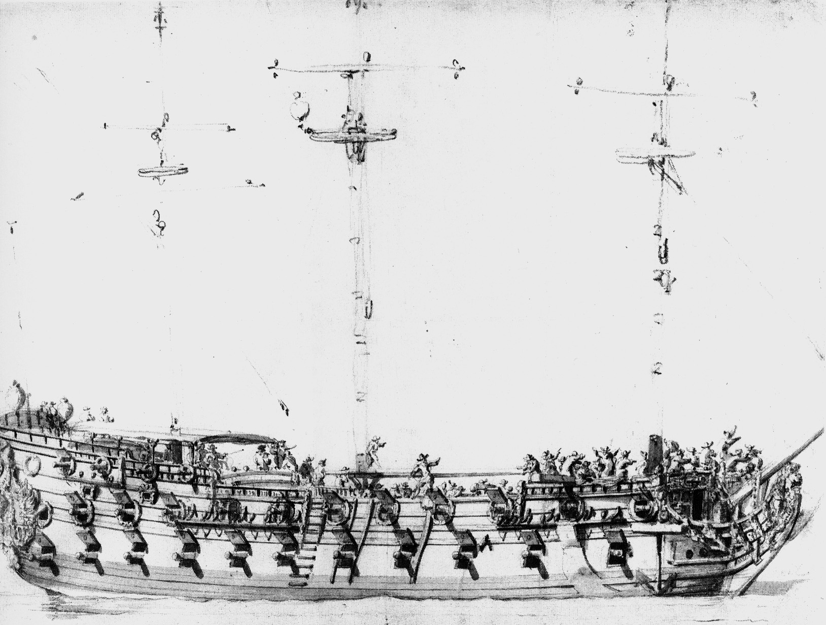 «Mordaunt», построенный в начале 1681 г. на частные средства, двумя годами позже был приобретен казной. Изображённые на рисунке человеческие фигуры дают хорошее представление о том, как малы были эти корабли и о стеснённости на них [ГММ: VV598]