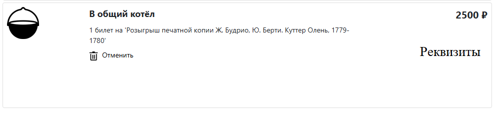 При желании вы можете приобрести дополнительные билеты, нажав на кнопку "Приобрести билет". Робот автоматически поставит требуемую сумму и описание, которое позволит идентифицировать ваши средства (не забывайте нажимать "Сохранить"). Все собранные средства попадают в общий котёл клуба и тратятся на текущие проекты, о чём можно убедиться в меню "Обещанные платежи", где данный взнос будет отражаться следующим образом. Там же дублируются реквизиты для перечисления средств.